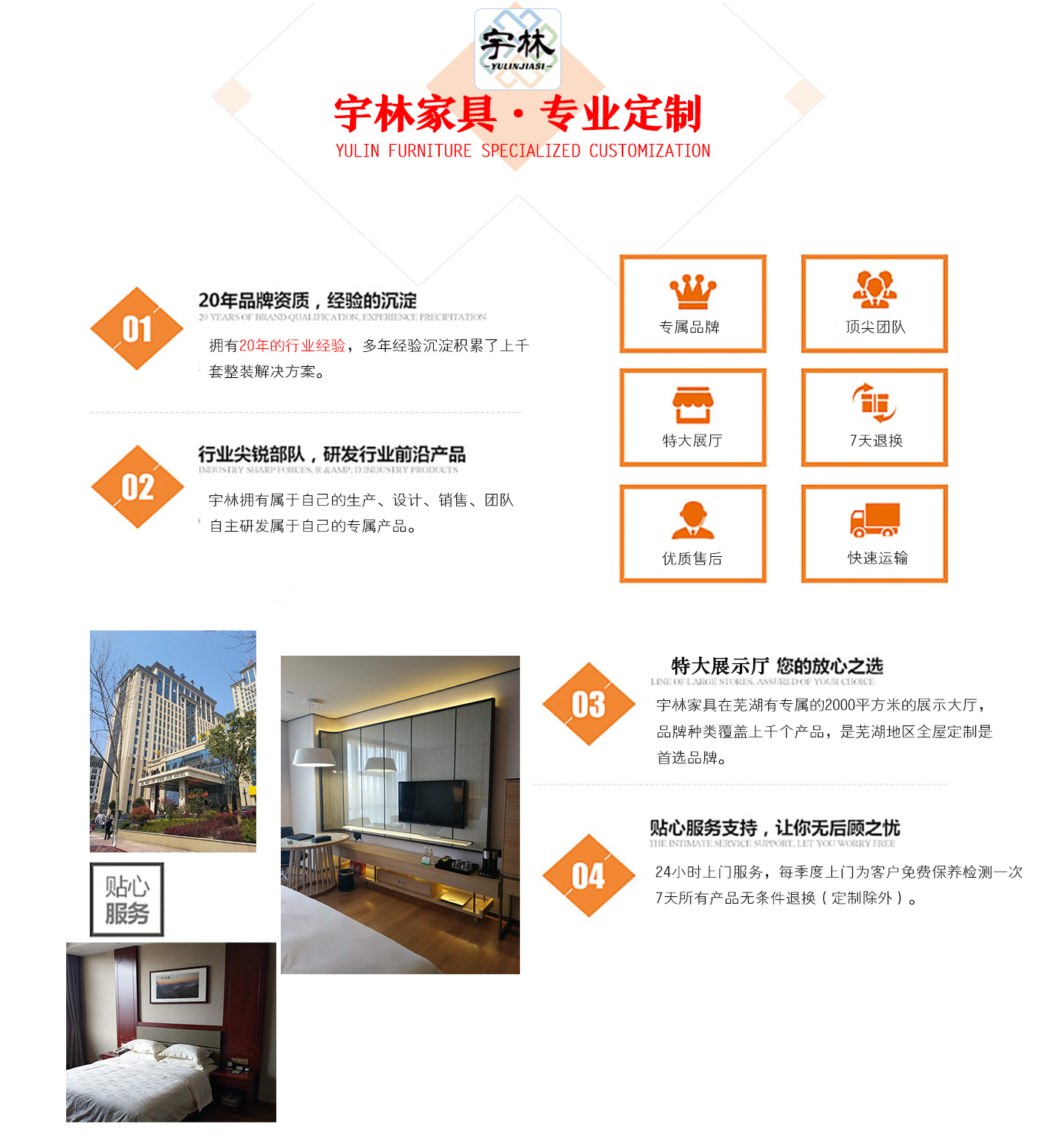 蕪湖宇林工貿(mào)有限公司創(chuàng)建于1996年,位于蕪湖高新技術(shù)開發(fā)區(qū)南區(qū),占地面積13000余平方米。是一個(gè)集研發(fā)、設(shè)計(jì)為一體的綜合性公司,公司主營(yíng)整體家居定制、酒店家具定制、娛樂場(chǎng)所配套家具以及軟體系列,團(tuán)隊(duì),銳意革新、進(jìn)去不息的理念,逐漸成為蕪湖家具行業(yè)的生產(chǎn)廠家,并在2006年注冊(cè)了“宇林”牌商標(biāo)。宇林品牌家具依現(xiàn)代與古典相結(jié)合的多種實(shí)木家具、實(shí)木貼皮家具。家具做工精細(xì),多用人工雕刻;其自然、典雅的風(fēng)格在很大程度上引導(dǎo)著人...
